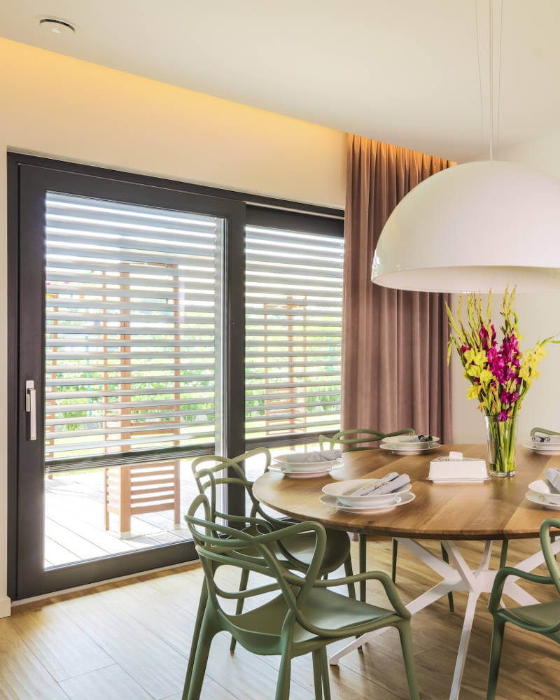 Dodatkowo istnieje możliwość zaprogramowania odpowiednich scenariuszy, które w danej porze będą ustawiać żaluzję na preferowanej przez Ciebie wysokości, bądź ją opuszczać o danej godzinie lub zmieniać kąt położenia lamel. Takie rozwiązanie daje Tobie jeszcze większą możliwość swobodnego regulowania ilością wpadającego do pomieszczenia światła.
