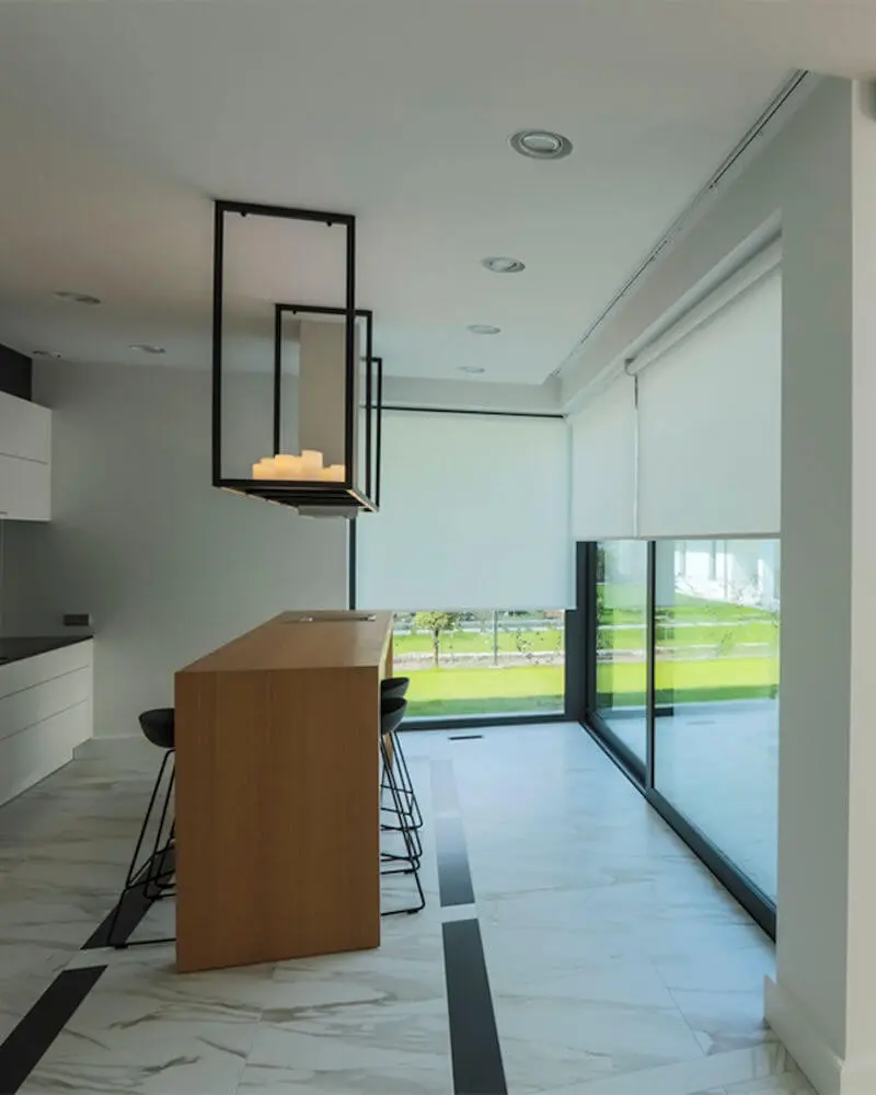 To wystarczy, aby materiał bez problemów poruszał się w płaszczyźnie góra-dół. Wystarczy wciśnięcie odpowiedniego przycisku na pilocie, aby roletę opuścić lub unieść do pożądanej pozycji. W dzisiejszych czasach jest to wariant coraz popularniejszy.